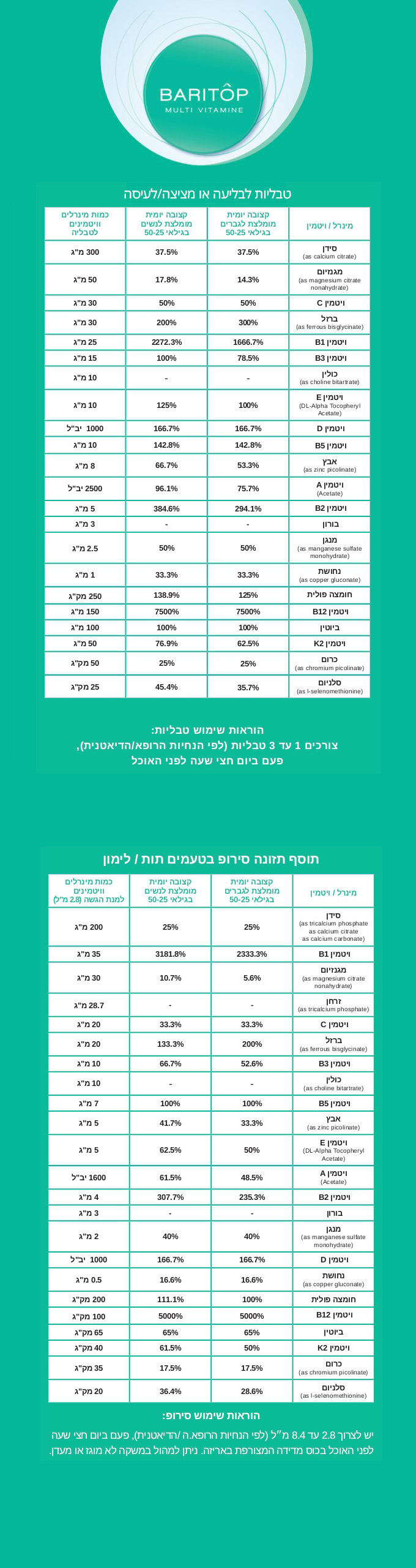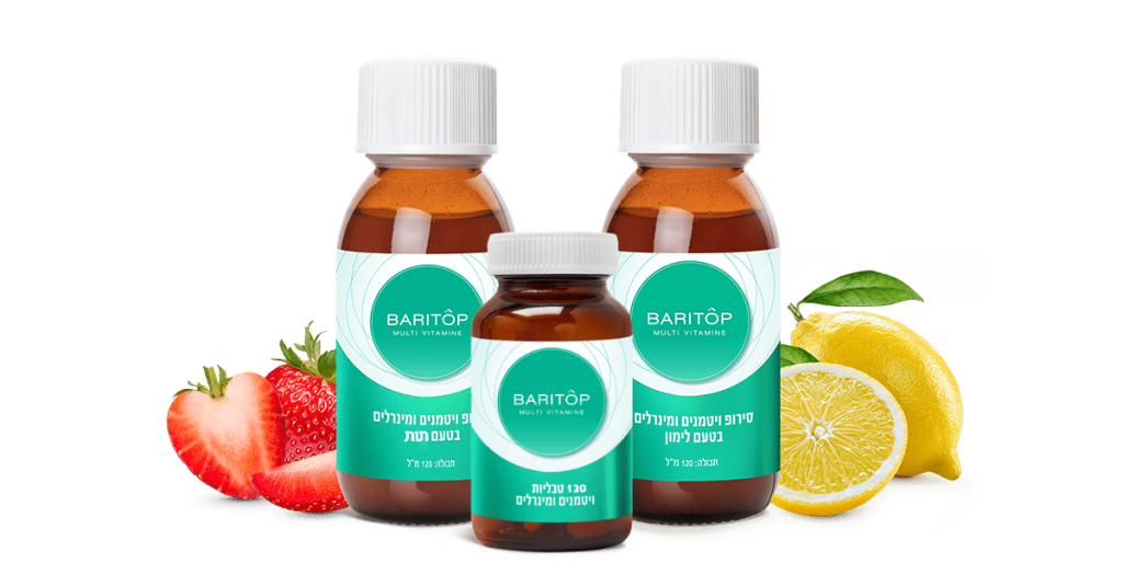 BARITÔP החברה היחידה בארץ המנגישה לכם מולטי ויטמין עשיר ומרוכז המכיל 24 ויטמנים ומינרלים באופן הצריכה שהכי נוח לכם: